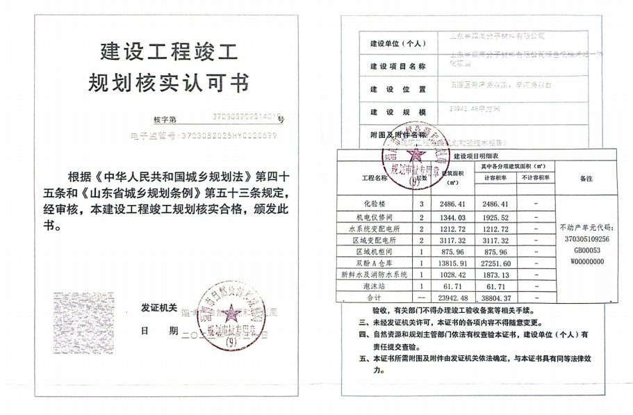 标题: 山东睿霖高分子材料有限公司绿色低碳烯烃一体化项目竣工信息