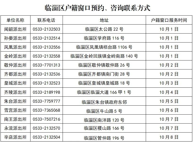 临淄公安分局关于2025年中秋、国庆假期户籍窗口便民服务工作的通告