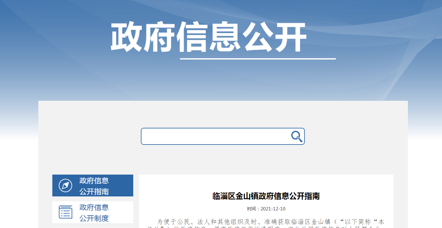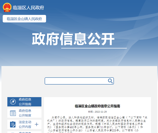 临淄区金山镇人民政府信息公开指南