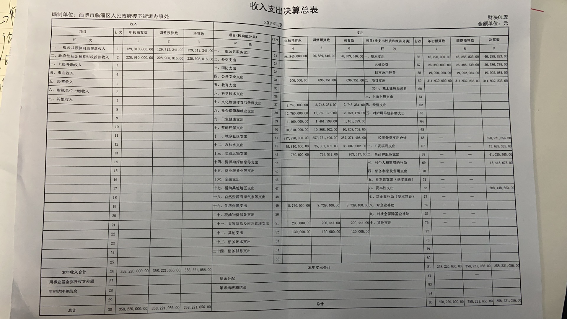 稷下街道2019年决算表