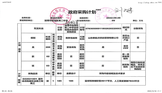 | 标题: | 淄博市临淄区第二中学运动场地改造提升采购 | ||