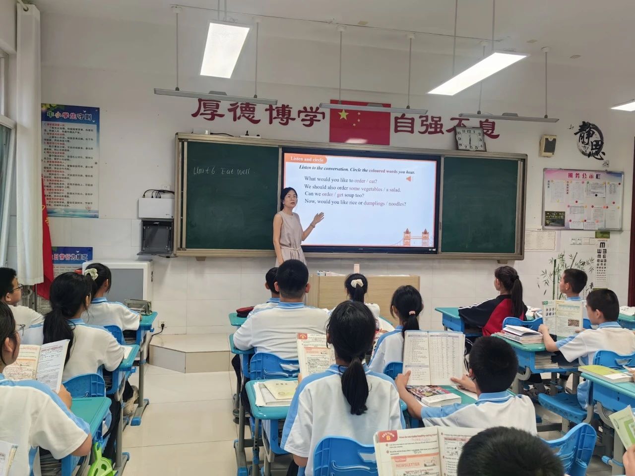 为进一步落实“新基础”育人理念,重建“新基础”高效课堂,5月21日下午,淄江中学初中部李莎莎老师和胡孟鑫老师基于袁教授的重建建议,分别对六、七年级的两节听说课进行了重建,淄江中学英语教研组的全体老师参与听课、研讨过程。