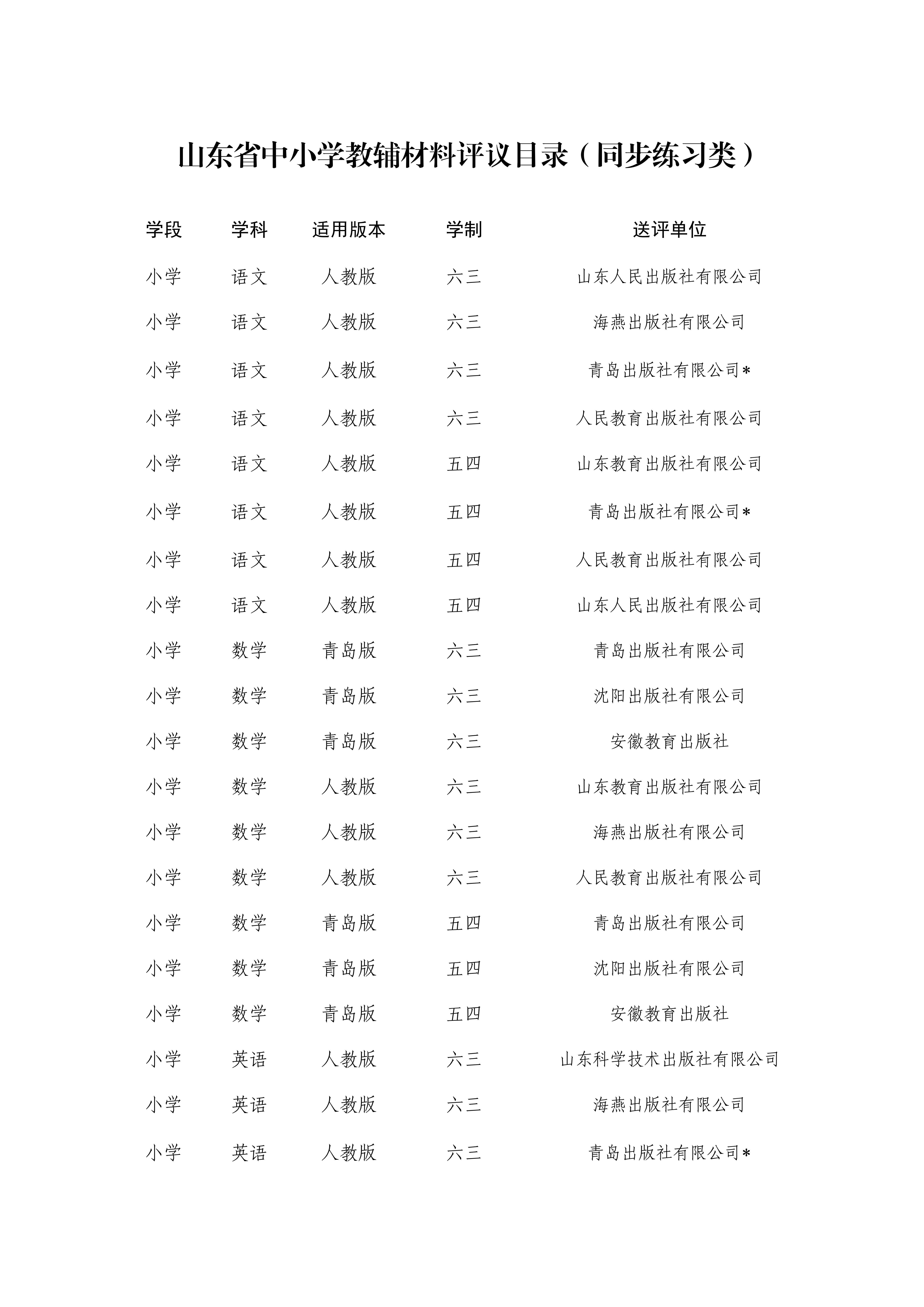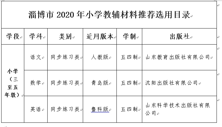 临淄区玄龄小学2024年秋季教辅材料选用、使用目录