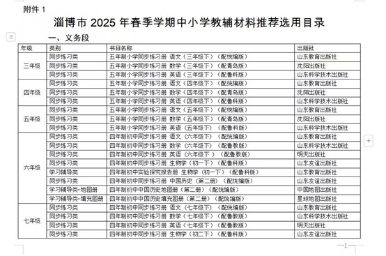 临淄区敬仲镇中学2025年春季教辅材料选用、使用目录