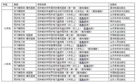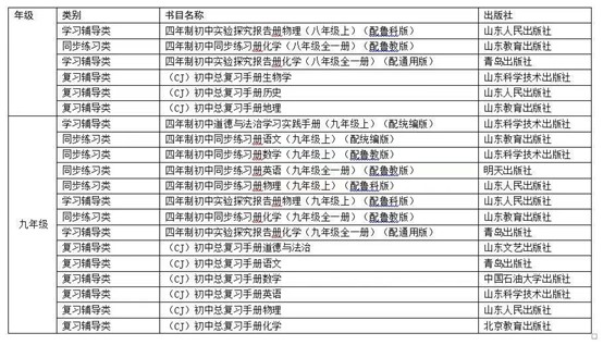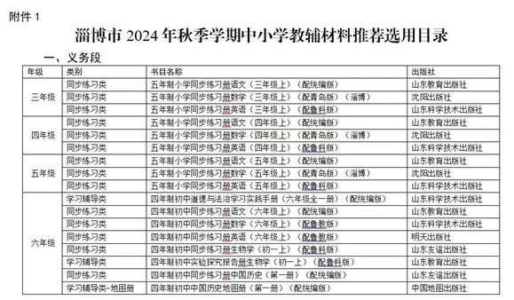 我校严格依据《淄博市中小学教辅材料推荐选用目录》(以下简称目录)按照自愿原则组织学生选用教辅材料,不在《目录》外另行征订或提供代购服务。 附:淄博市临淄区敬仲镇中学选用教辅材料信息