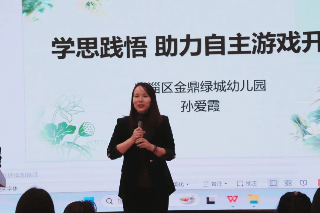 崔艳玲围绕“自主游戏的思与行”主题,基于幼儿视角,从环境创设、材料投放、游戏表征等方面进行详细解读,如何通过游戏促进幼儿的学习和发展,以实现游戏与学习的平衡,让参会教师看得懂、学得来,用得上。