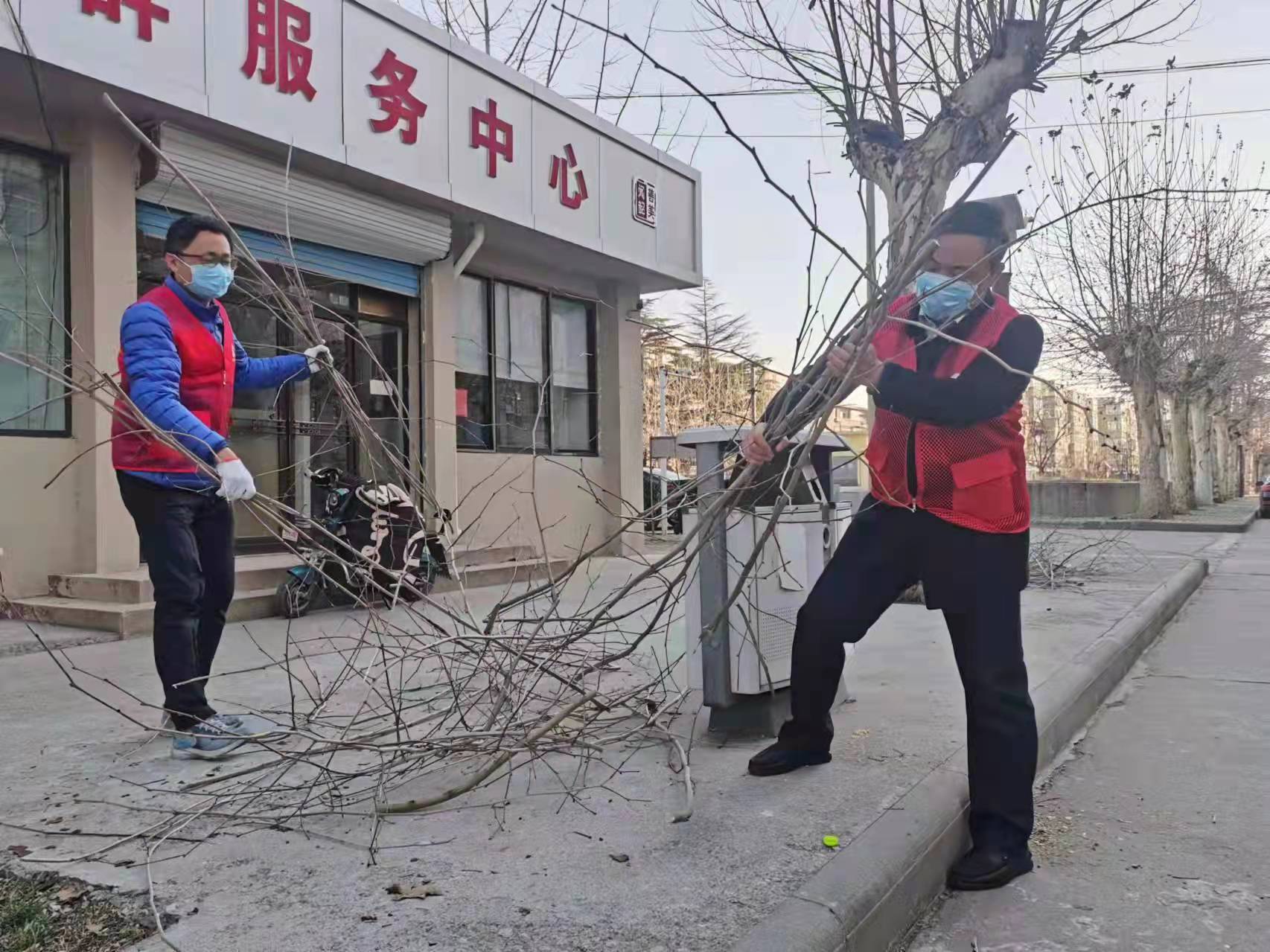 志愿服务小组首先来到遄台社区清理小区道路、树坑、篮球场、停车场等区域的散乱垃圾、落叶,并向居民开展12340电话接听宣传工作。部分志愿者在挂包路段清理道路两侧及绿化带内积存的垃圾、落叶、城市牛皮癣等,整理摆放乱停乱放非机动车、共享单车,清洁擦拭公交站亭、公益广告牌等户外公用设施。