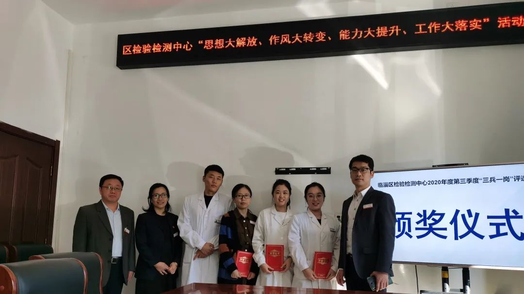 通过“三兵一岗”评选,推选身边看得见、摸得着、学的到的先进人物,强化“四大”活动引领作用,在检验检测业务上抓落实、求突破,2020年新增生活饮用水、兽药残留等3类产品中27个参数的检测资质,完成农产品机构考核证书的换证工作,参加省级能力验证2次共计46个项目均一次性通过,广大干部职工躬身入局、担当作为,为建设富强文明智慧美丽的现代化新临淄贡献检验检测力量。
