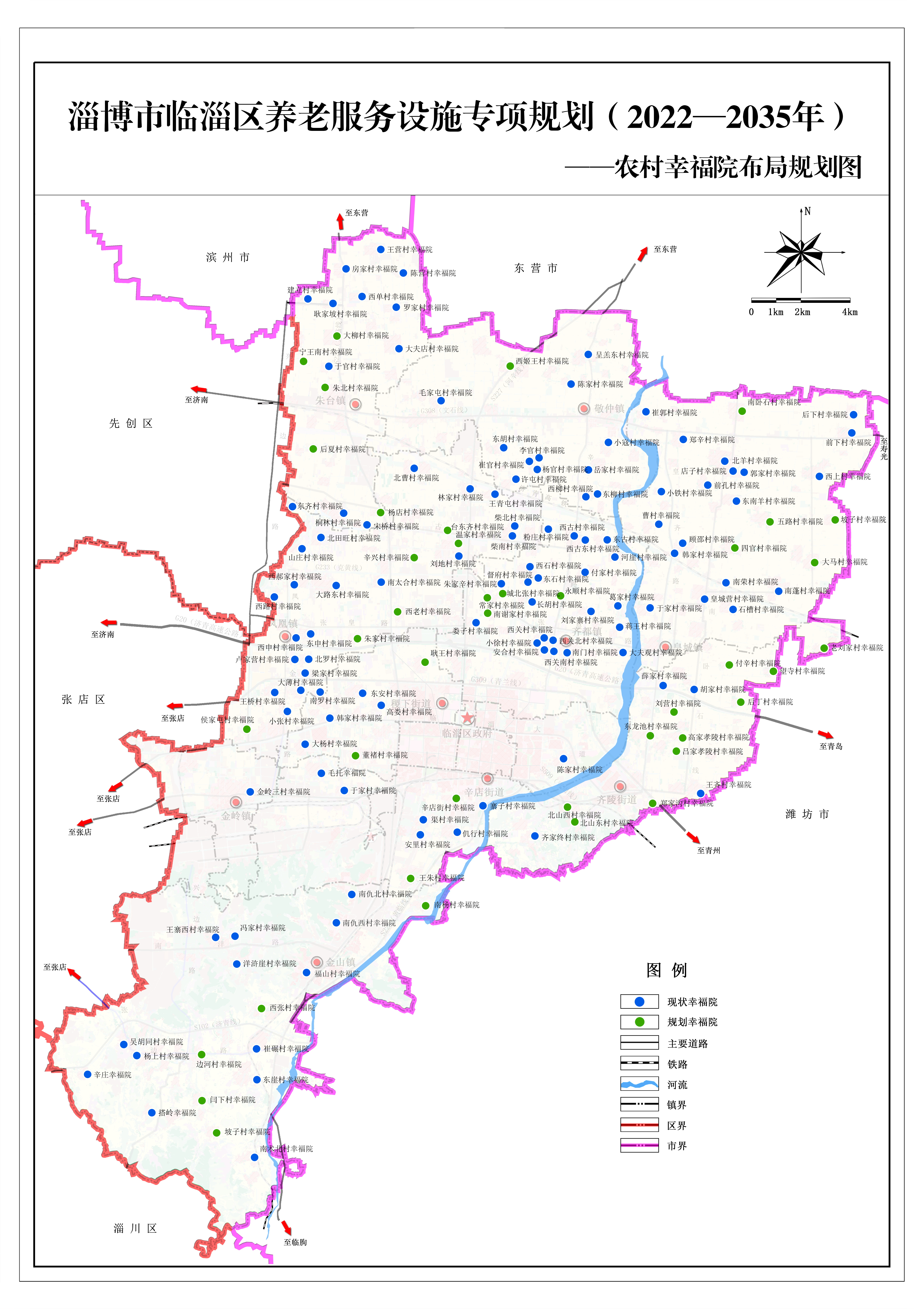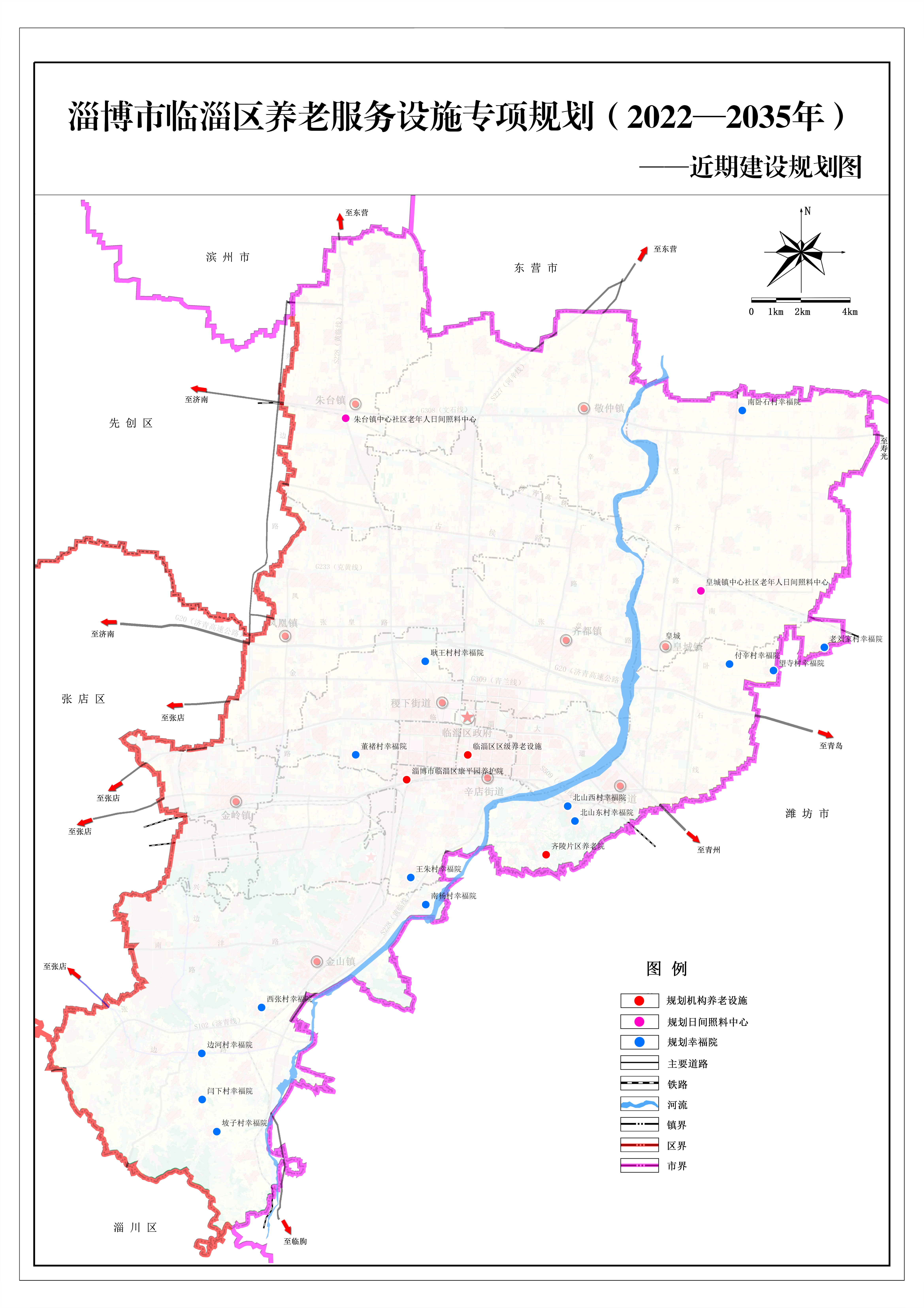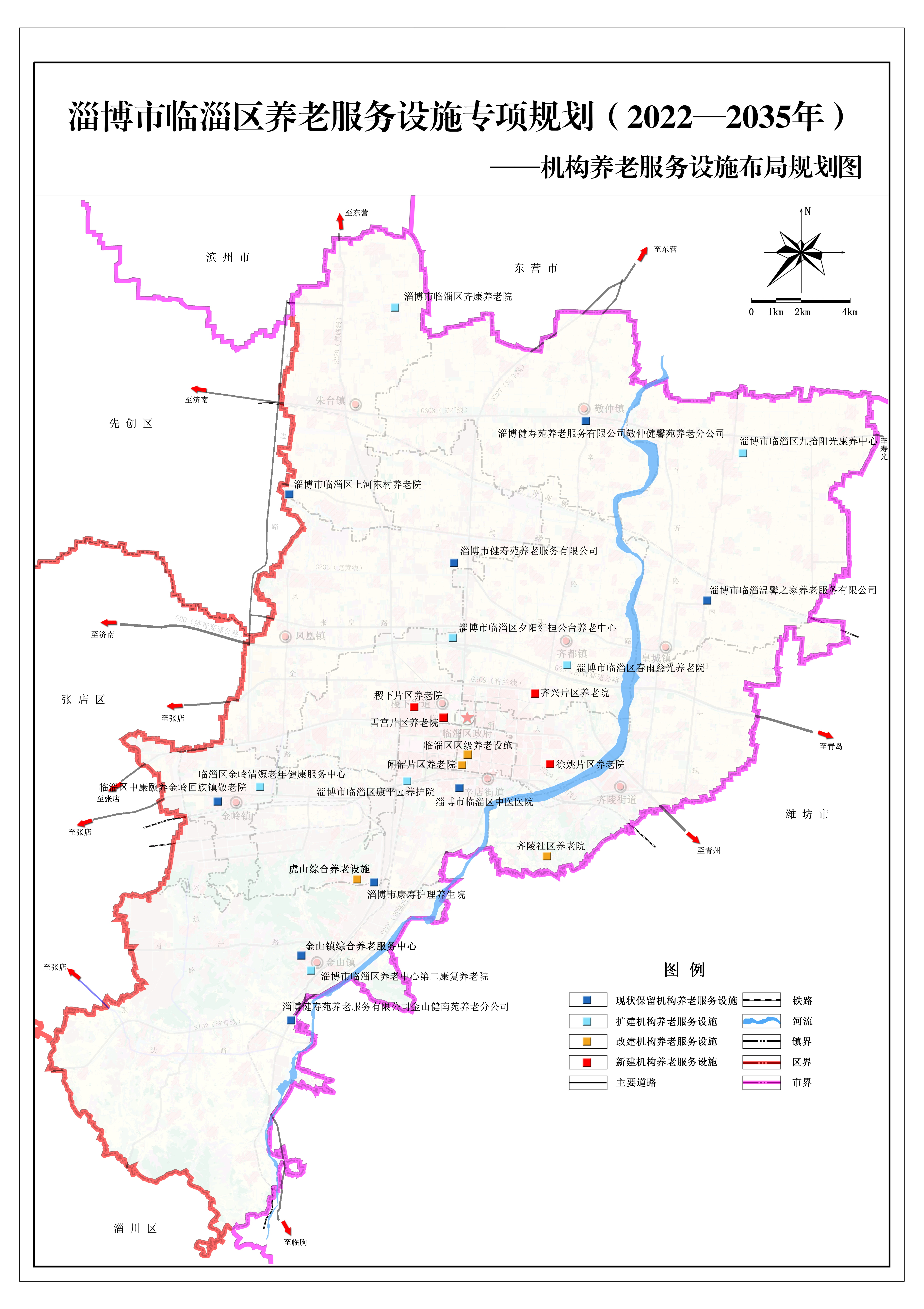 至2035年,规划临淄区机构养老设施24处,其中区级1处、街道(镇)级23处(现状保留9处,新建4处,改建3处和扩建7处),共提供机构养老床位约6379张。