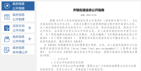 临淄区齐陵街道政府信息公开指南