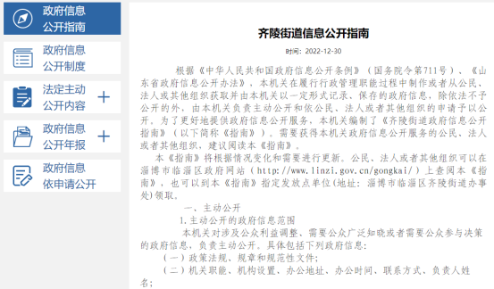 《临淄区齐陵街道人民政府信息公开指南》(以下简称《指南》)由本机关根据《中华人民共和国政府信息公开条例》(国务院令第492号公布,国务院令第711号修订,以下简称《条例》)编制。需要获得本机关信息公开服务的公民、法人或者其他组织,建议阅读本《指南》。本指南根据需要及时更新。