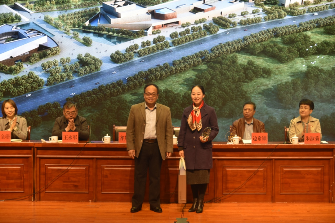 随后,齐文化研究院副院长、齐文化博物院院长马国庆分别为边希锁、齐英秀同志颁发了“光荣退休”奖杯和纪念品。