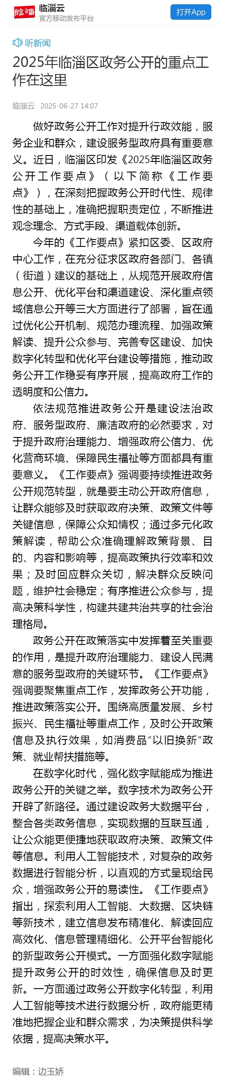 (媒体解读)2025年临淄区政务公开的重点工作在这里