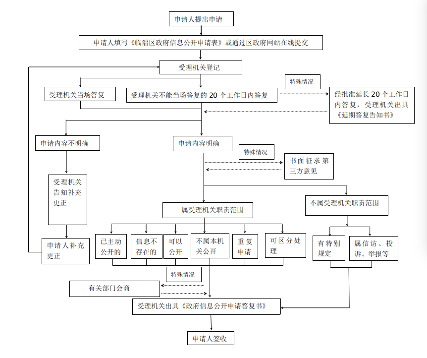 申请人可通过邮政寄送方式向本机关提交申请。受理机构:临淄区人民政府办公室