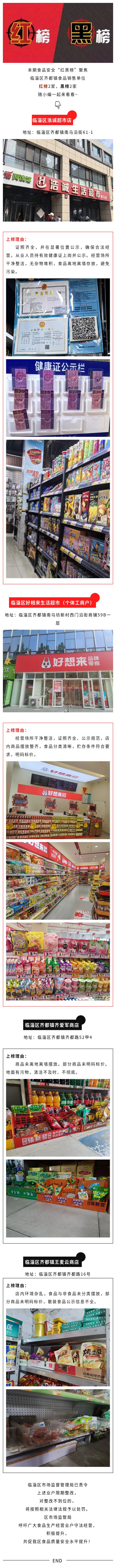 临淄区市场监督管理局食品安全提示警示“红黑榜”(第144期)——齐都篇