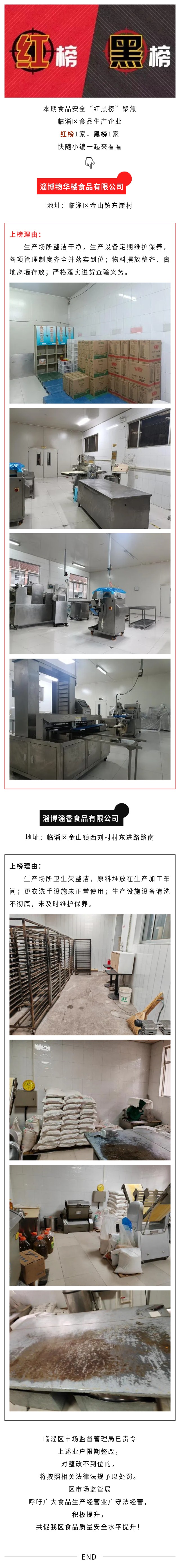 临淄区市场监督管理局食品安全提示警示“红黑榜”(第146期)——食品生产企业篇