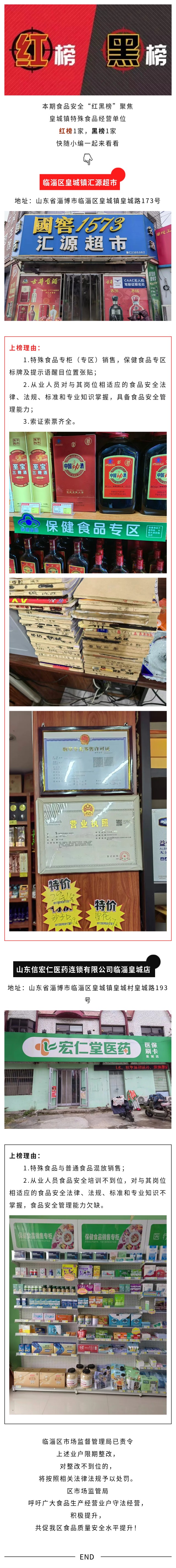 临淄区市场监督管理局食品安全提示警示“红黑榜”(第147期)——皇城篇