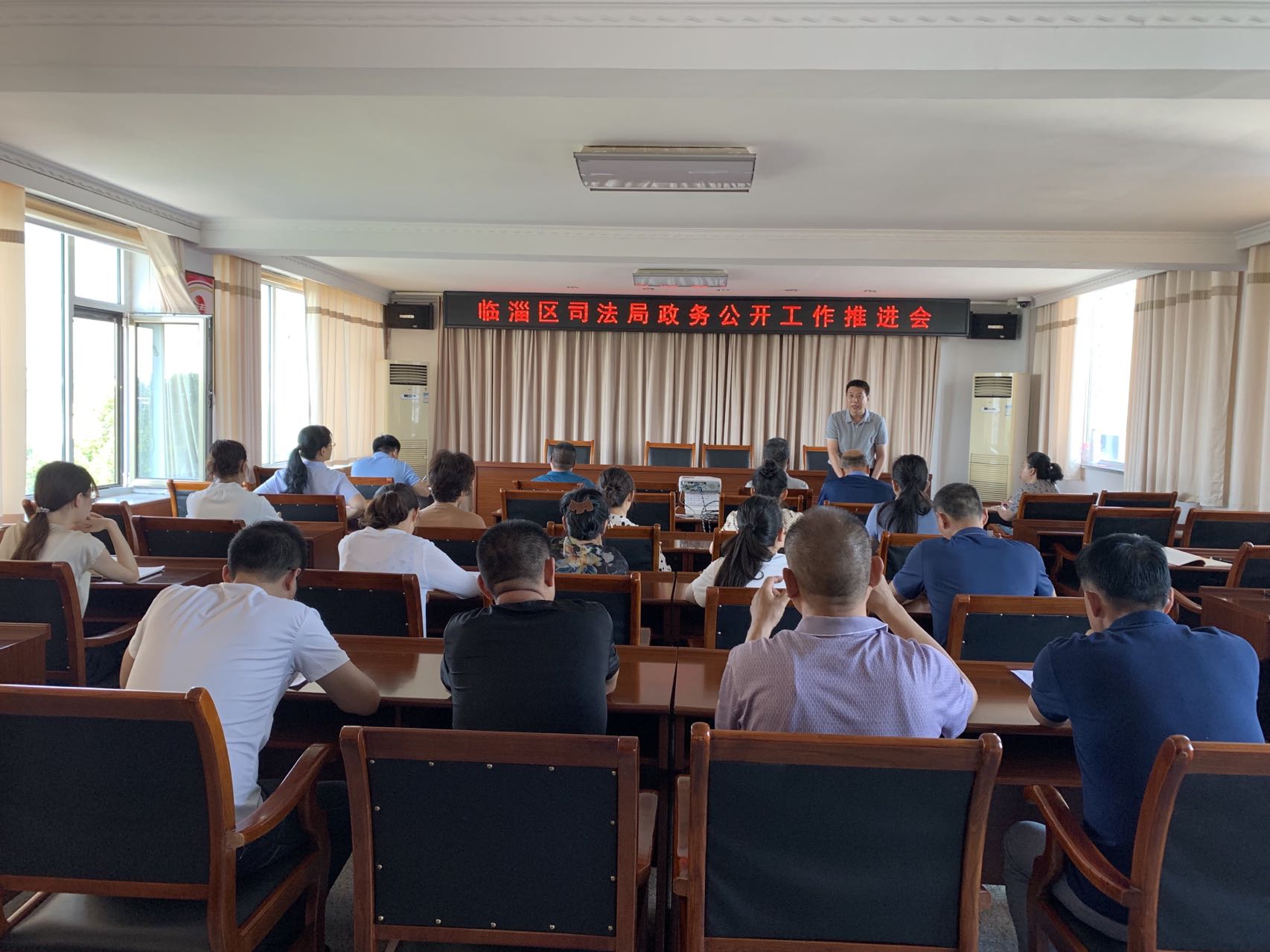 7月29日,区司法局召开政务公开工作会议,区司法局党组书记、局长何庆林主持会议并讲话,机关全体干部职工参加会议。