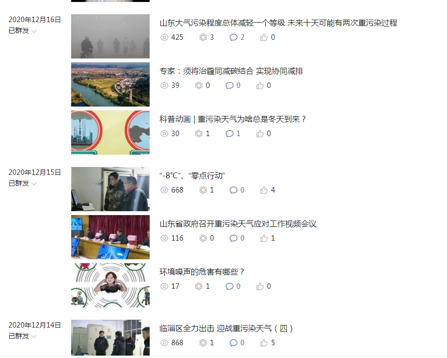 及时发布重污染天气应急响应、转发市局关于空气和水质量的通报。