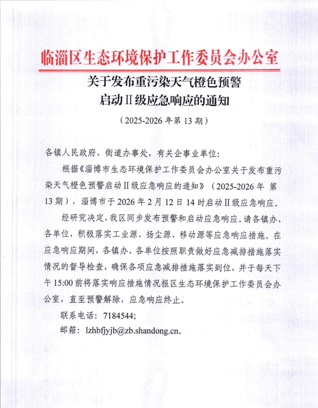 关于发布重污染天气橙色预警启动Ⅱ级应急响应的通知