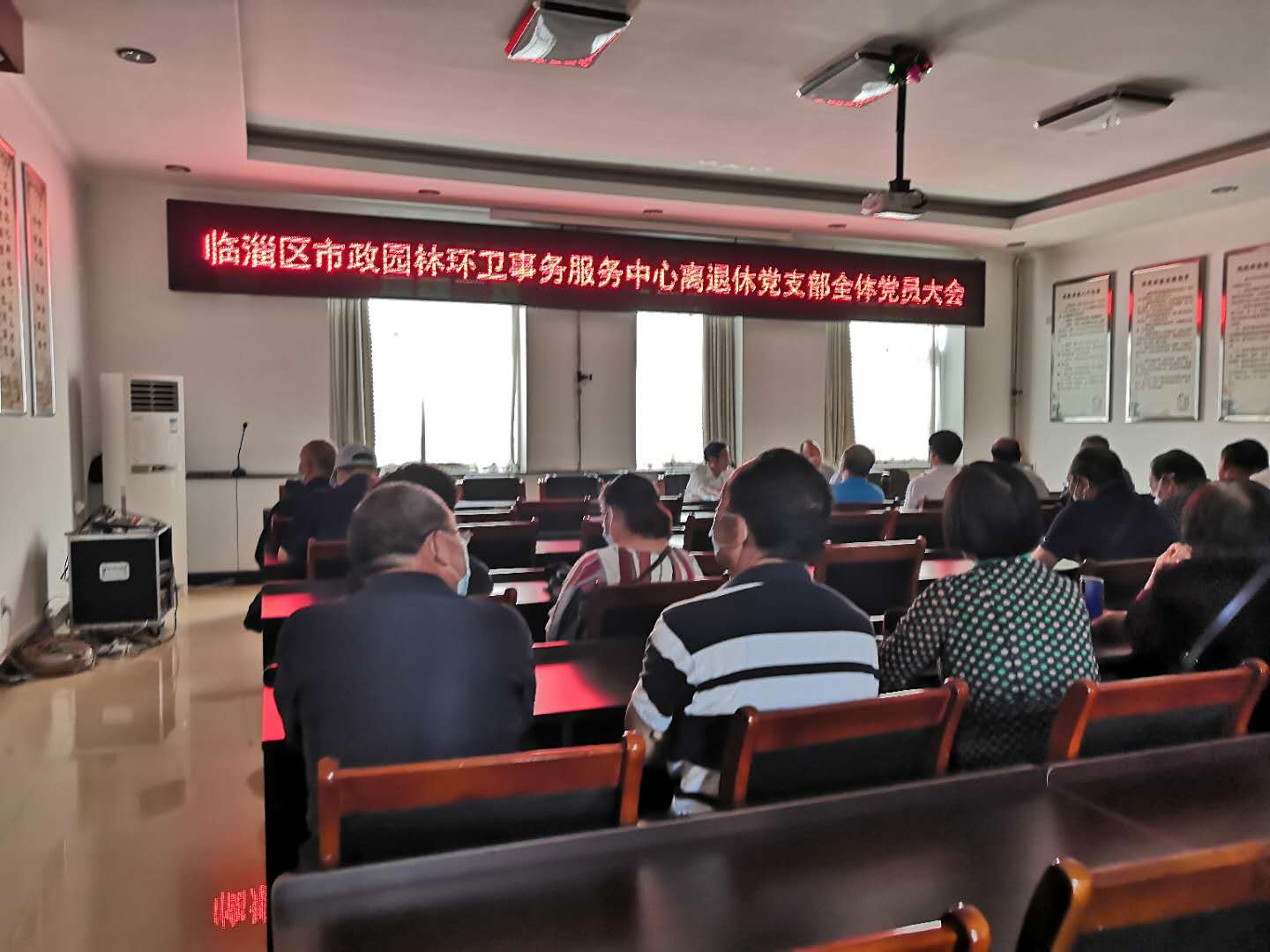 临淄区市政园林环卫事务服务中心离退休党支部于2020年5月29日上午9点组织全体党员召开党员大会暨主题党日活动,一是学习了《第十三届全国人民代表大会第三次会议政府工作报告》、《临淄区委老干局关于印发<2020年全区老干部工作要点>的通知》等文件,二是现场要求离退休党员关注了老干部公众号。三是收取了党费。通过此次大会,离退休党员纷纷表示收获颇多,并表示会积极支持离退休党支部工作。