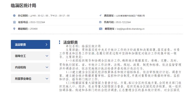 临淄区统计局政府信息公开工作机构和申请受理机构为:临淄区统计局办公室。