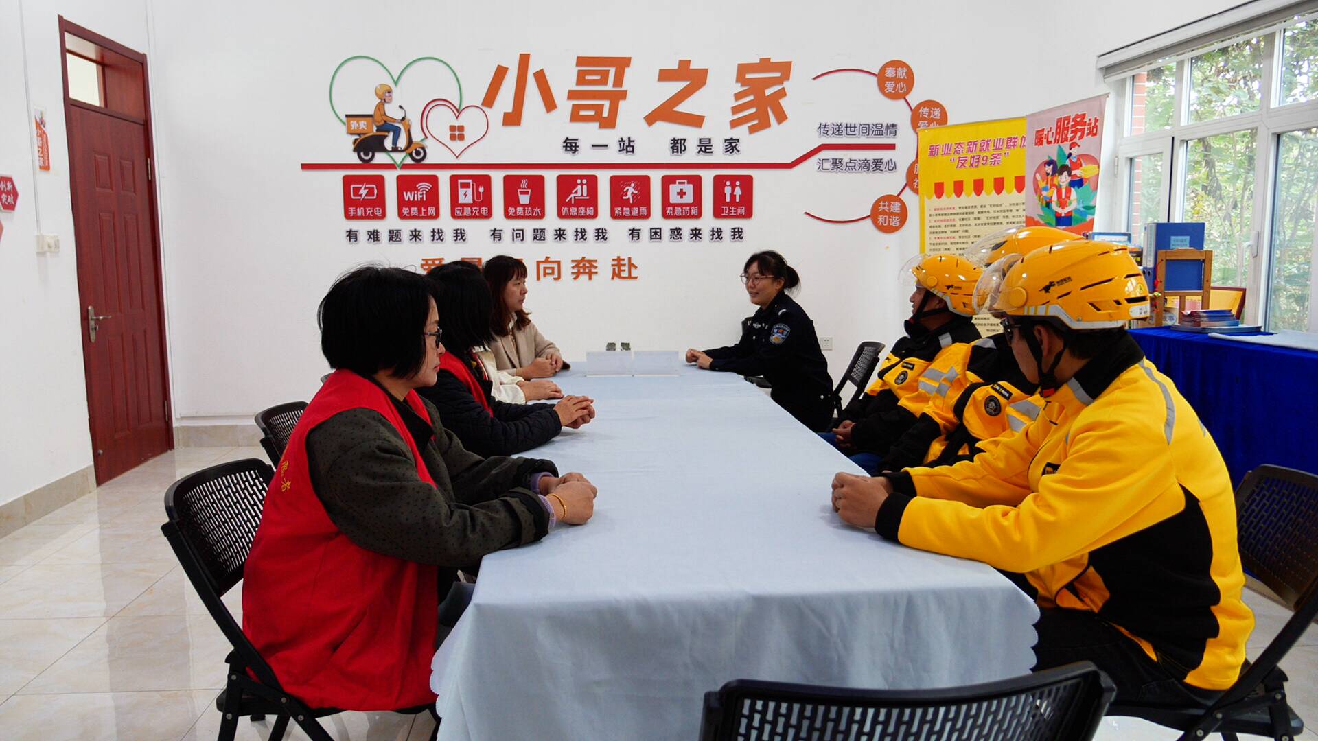 根据外卖小哥的实际需求,社区整理出涵盖应急维修、饮水休息、权益维护等在内的16项服务清单,并联合多方资源开展安全课堂,助力提升职业素养。同时,编制《小哥权益保障指南》,设立24小时服务专群。当小哥遇到派送纠纷、车辆剐蹭等问题时,社工会迅速介入,提供调解、代办送餐、陪伴就医等一系列支持,成为他们坚实的“守护者”,让小哥们能更安心地奔跑在路上。