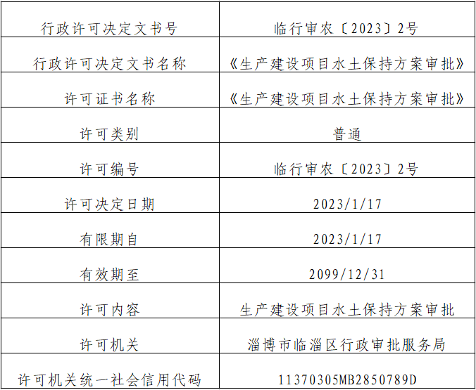 关于《淄博齐翔腾达化工股份有限公司顺丁橡胶扩建项目水土保持方案的批复》的公示