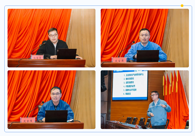 参会人员集体观看了2023年安全生产工作片。山东广浦生物科技有限公司、山东一诺威新材料有限公司、山东胜炼化工股份有限责任公司、淄博齐鲁林德气体有限责任公司四家企业介绍典型做法,交流安全生产工作经验。