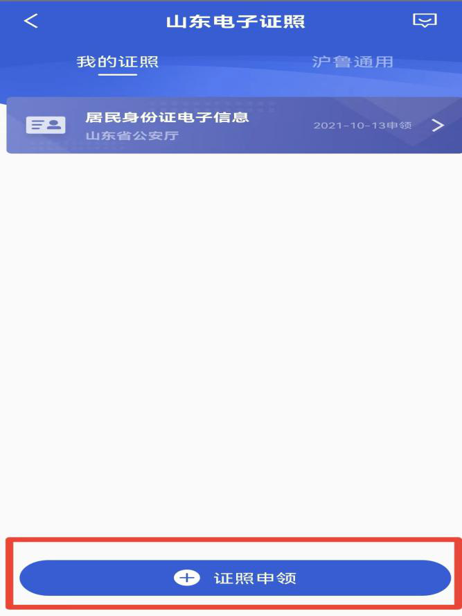 在“爱山东”APP中“我的证件”界面,点击要亮证的证件类型,点击进行人脸核验出示证书办理业务。