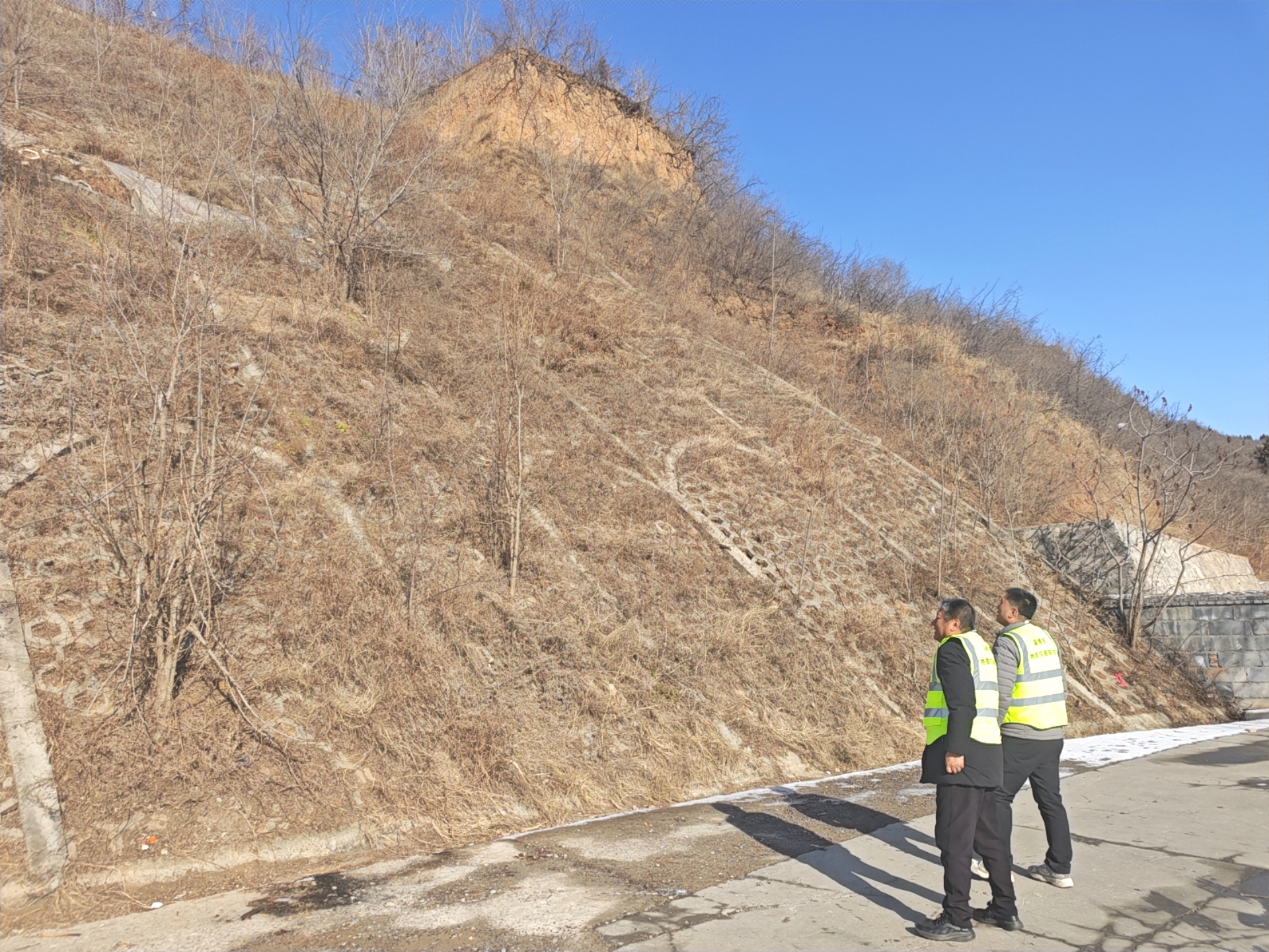 巡查过程中,工作人员秉持“全覆盖、无死角、查隐患、防风险”的原则,重点对隐患点边坡岩土体稳定性、融雪排水系统通畅情况、监测标识标牌完好度以及周边环境变化等关键环节进行细致勘查,以全面掌握隐患点实时状态,对可能存在的风险逐一排查。