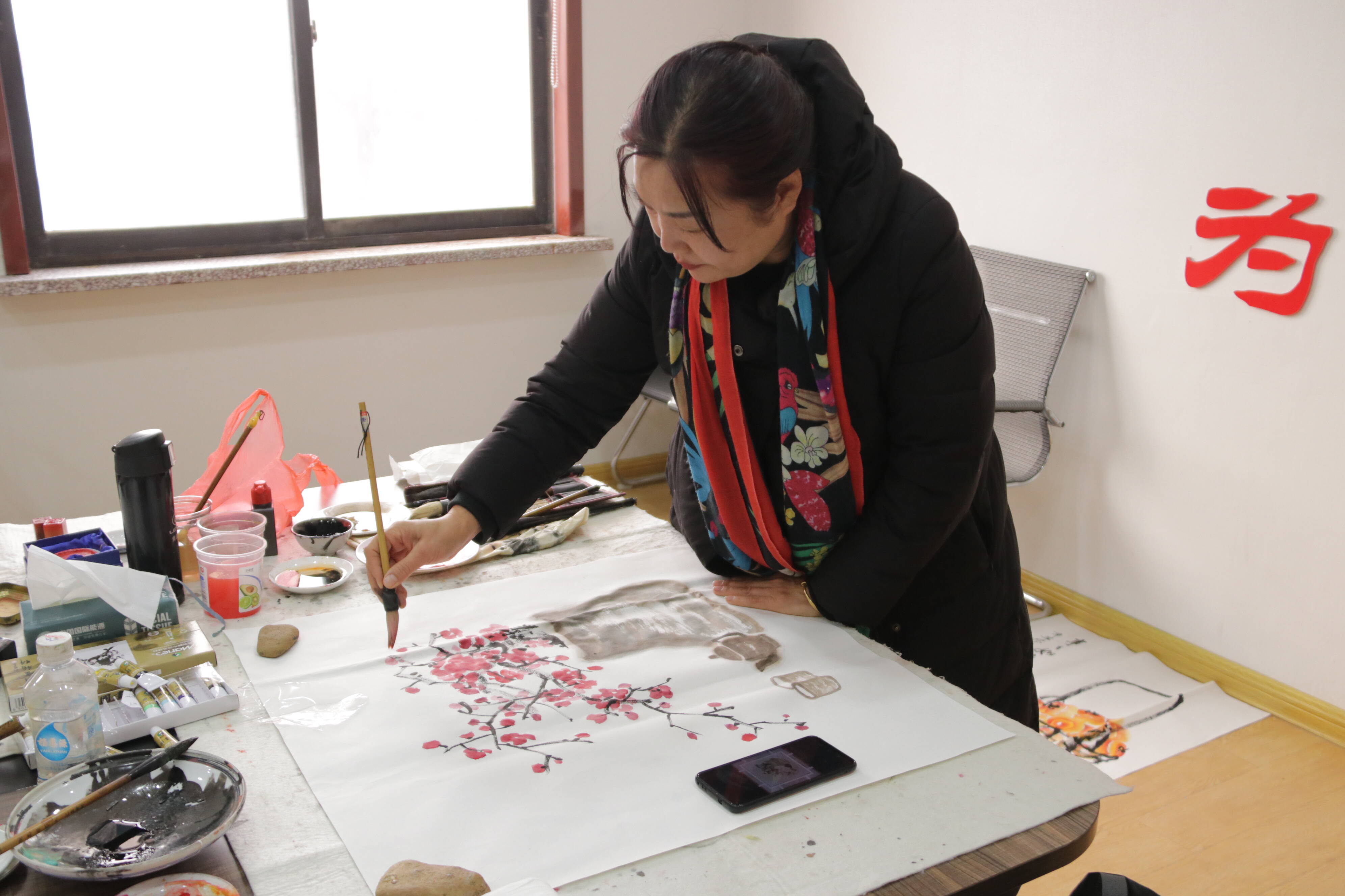 活动现场,一幅幅色彩鲜艳、题材丰富、寓意吉祥的传统画作与新颖创作相映成趣,构成了一个充满年俗韵味的小型展览。活动不仅停留在“赏”的层面,更注重互动与体验。活动安排了简易绘制体验区,让大家在亲手操作中,感受传统技艺的魅力,将对新年美好的憧憬融入一笔一画之中。