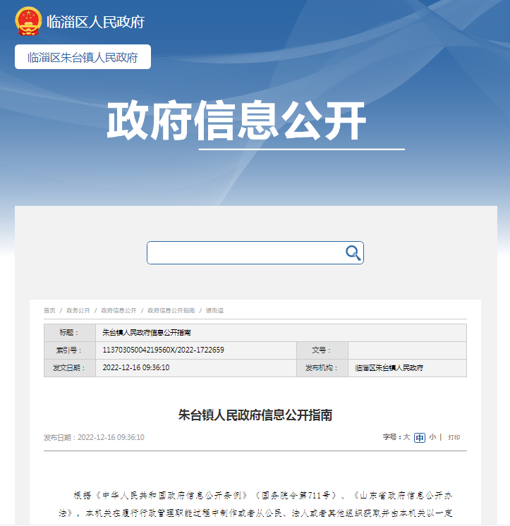 朱台镇人民政府信息公开指南